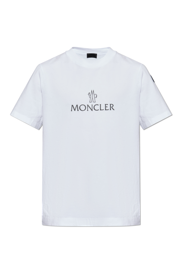 Indulge in the epitome of refined casualwear with the Moncler Logo T-shirt. This quintessential white T-shirt, crafted from luxurious cotton, embodies the perfect blend of simplicity and elegance. Its classic silhouette features a round neckline and short sleeves, promising comfort and style in equal measure. The front of the T-shirt proudly showcases the iconic Moncler logo, accompanied by its distinctive symbol, rendered in striking black. This subtle yet bold statement piece is elevated by contrasting dark side panels, adding an intriguing visual element to the ensemble. Attention to detail is evident in the meticulously crafted stitching, a testament to Moncler\'s commitment to superior quality and craftsmanship. A cornerstone of any discerning gentleman\'s wardrobe, this T-shirt seamlessly transitions from casual outings to leisurely gatherings. Why Choose This Product? Timeless design with a classic fit Premium 100% cotton for unmatched comfort Distinctive logo and contrasting panels for a unique look Exceptional craftsmanship with fine stitching Versatile piece perfect for casual styling