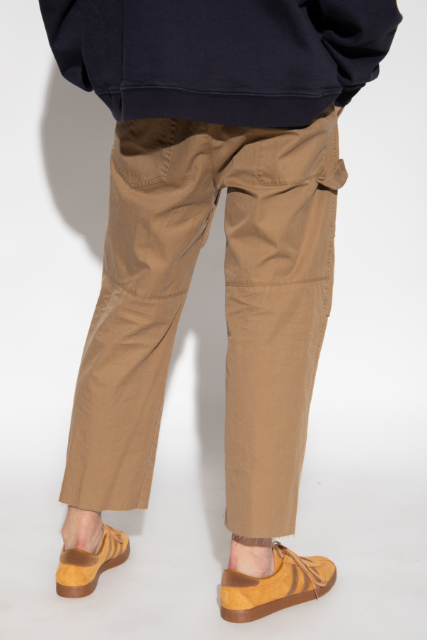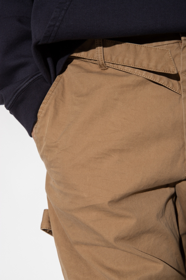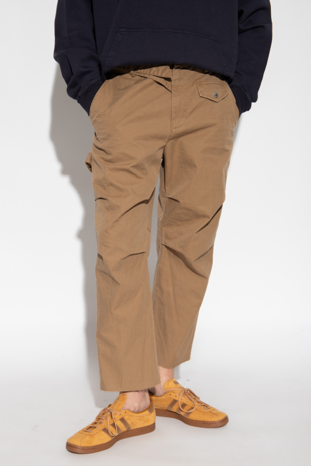 Beige trousers from Dsquared2. Made from cotton, this pair falls with slightly tapered cropped legs and features a zip fly with a hook and button, a waist-cinching buckle belt, multiple pockets and raw hems.