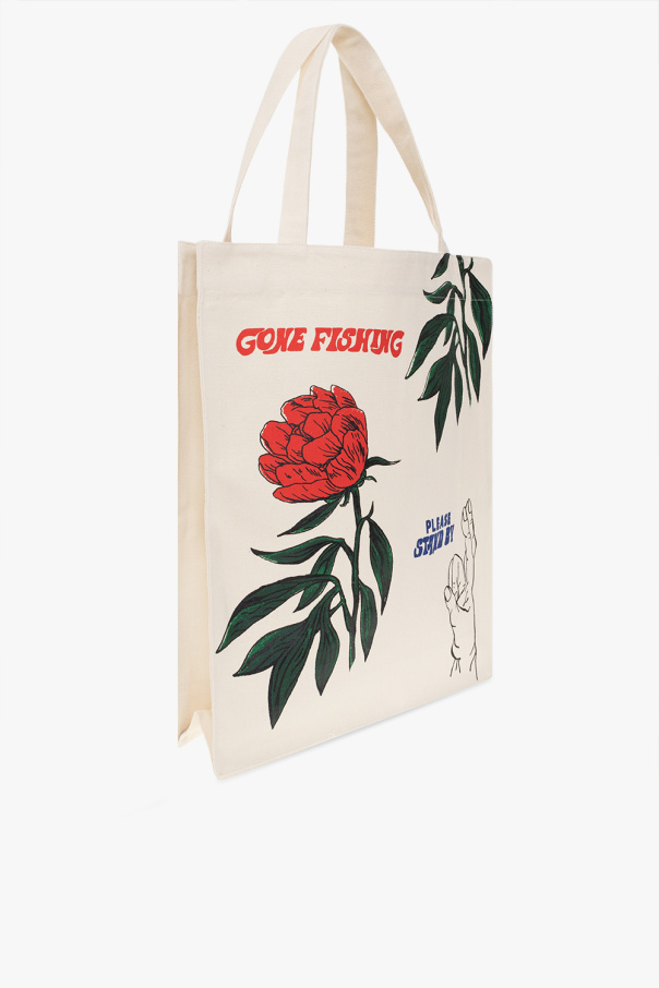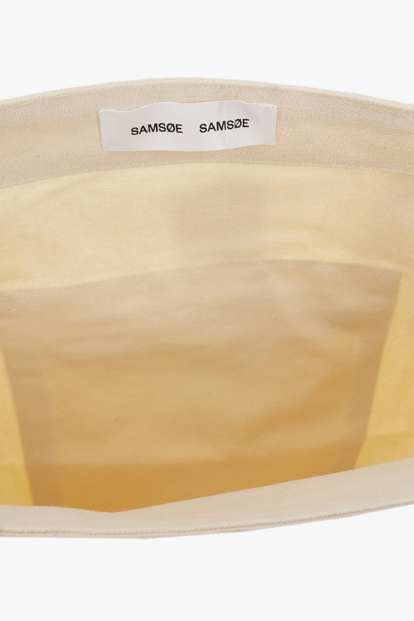 Cream shopper bag from Samsoe Samsoe. Crafted from recycled cotton, this model features a floral pattern, two half-round handles and one internal compartment.