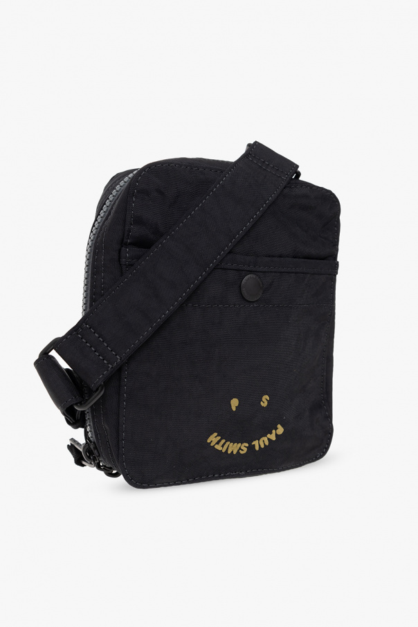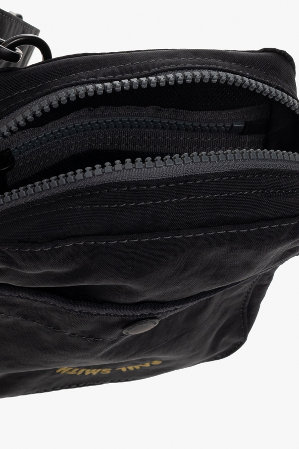 Black and grey shoulder bag from PS Paul Smith. Fastened with a two-way zipper, this design features a zip pocket accompanied by beige logo embroidery on the front, a detachable and adjustable shoulder strap and one internal compartment with one zip pocket and one slip pocket.