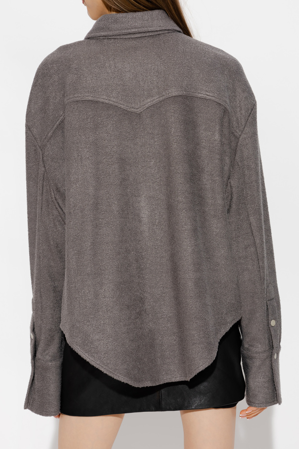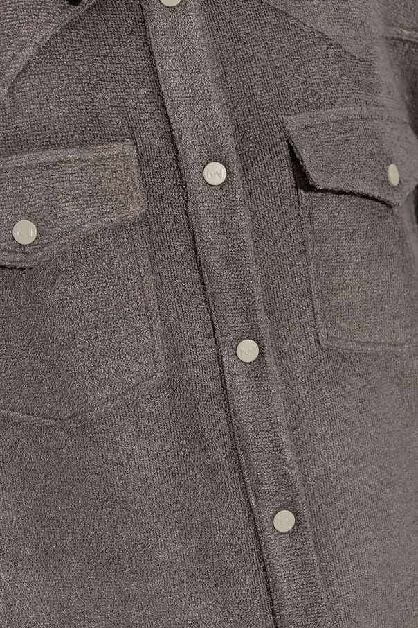 Grey ‘Raze’ shirt from The Mannei. Crafted from terry cotton with a relaxed fit, this style features snap closures with a logo, two flapped pockets with snaps and long sleeves with snap-fastened cuffs.