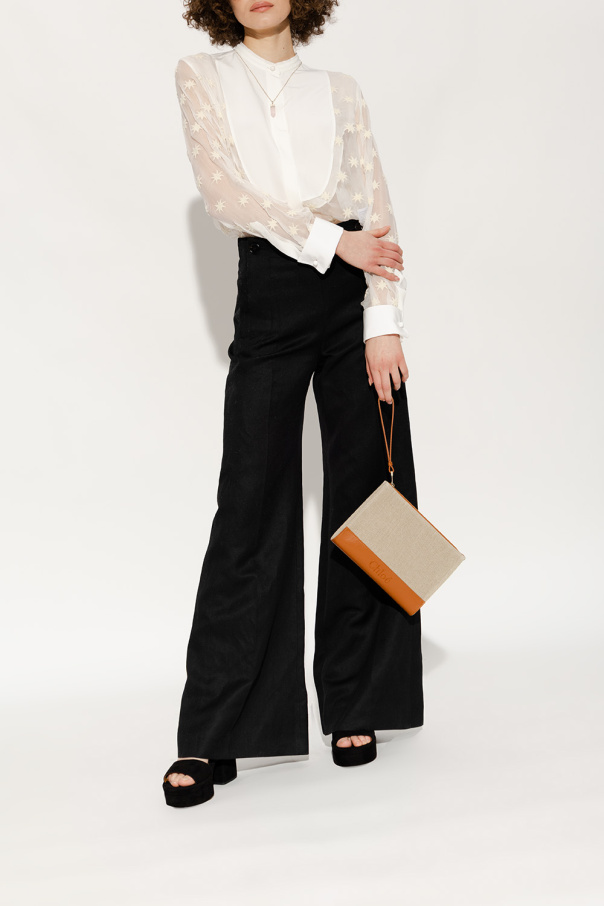 Black ‘Odina’ heeled sandals from Chloé. Crafted from suede, this model features an adjustable ankle strap with a logo-engraved buckle, an elevated block heel and a beige and black sole in leather and rubber.