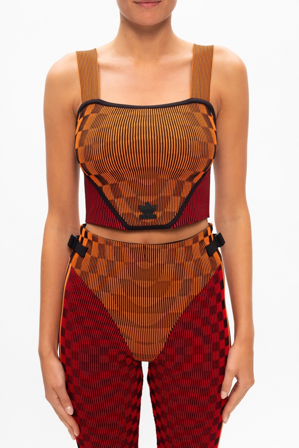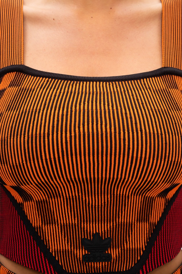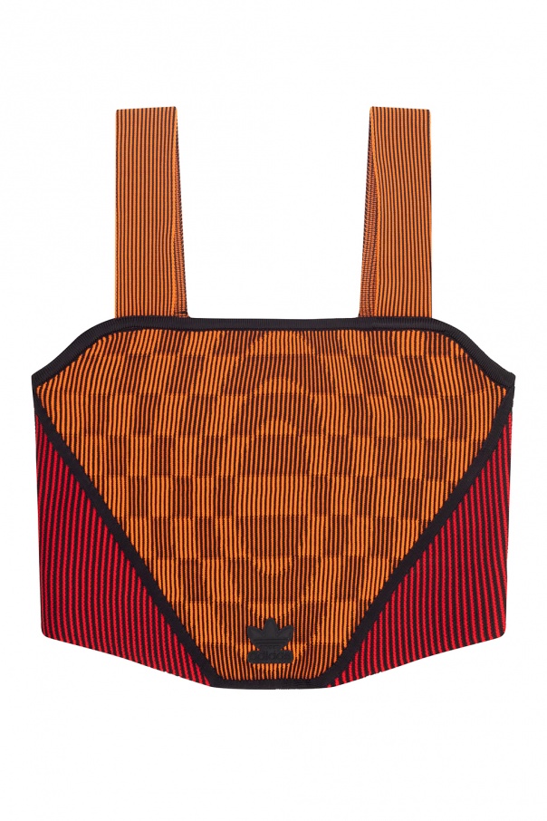 Orange, red and black corset top on thick straps from ADIDAS Originals x Paolina Russo. Featuring ribbed structure, this style showcases rubberised tactile black logo detail on the front.