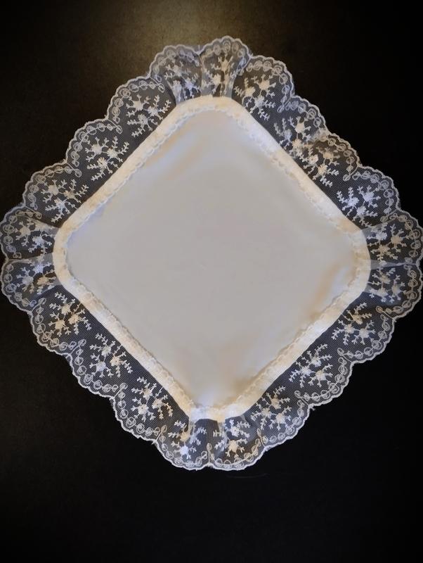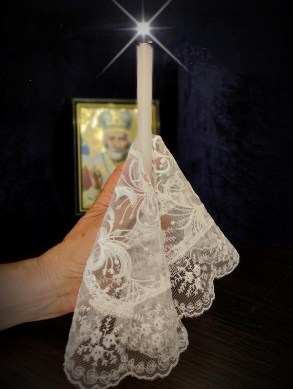 Церковні ажурні серветки, платочки для свічок на весілля, вінчання, з ніжного білого гіпюру, обшиті мереживом. Поштучно, або в комплекті (серветка для обручок в подарунок), ціна вказана за одиницю.