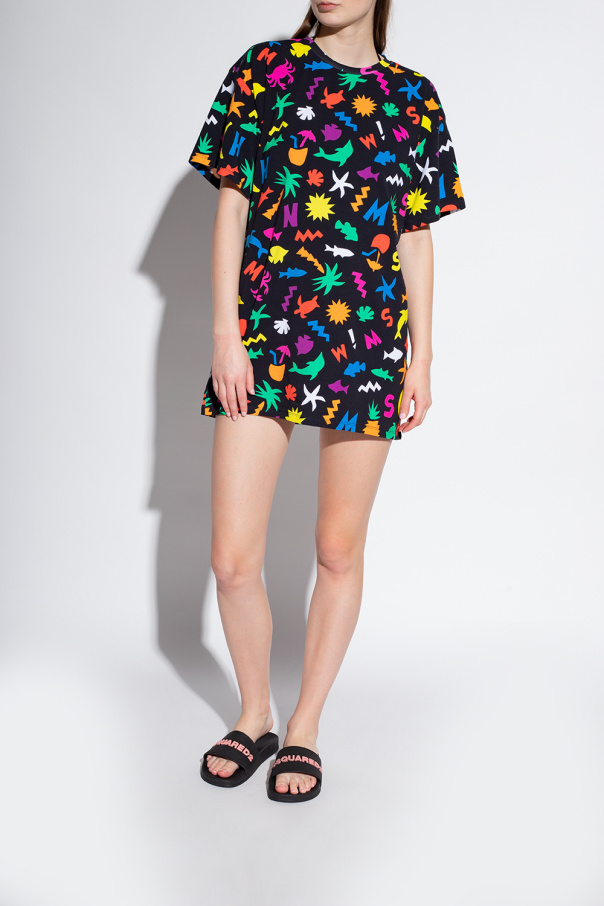 Black slides with a raised logo in light pink from Dsquared2. Made of rubber.