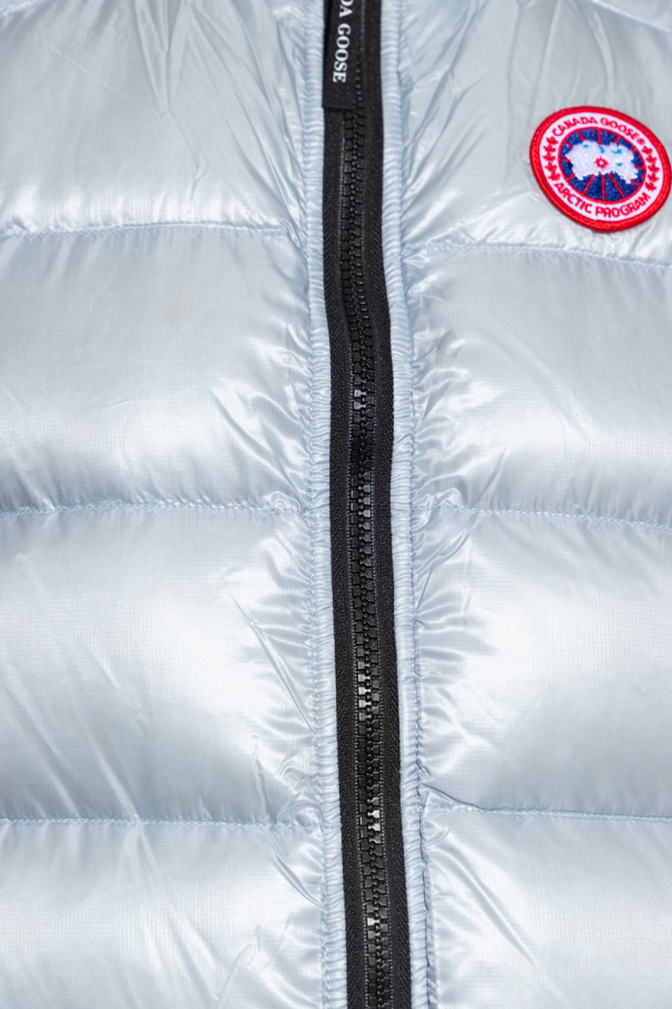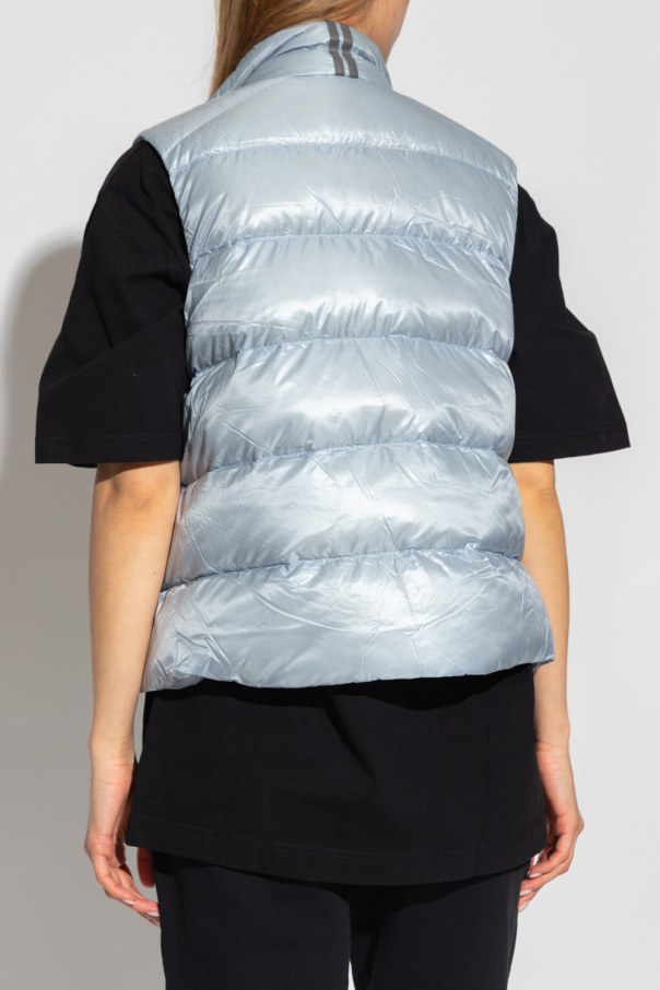 Blue and grey ‘Cypress’ quilted down vest with a stand collar from Canada Goose. Fastened with a two-way zip, this garment features a logo patch, two zip pockets and drawstring hem.