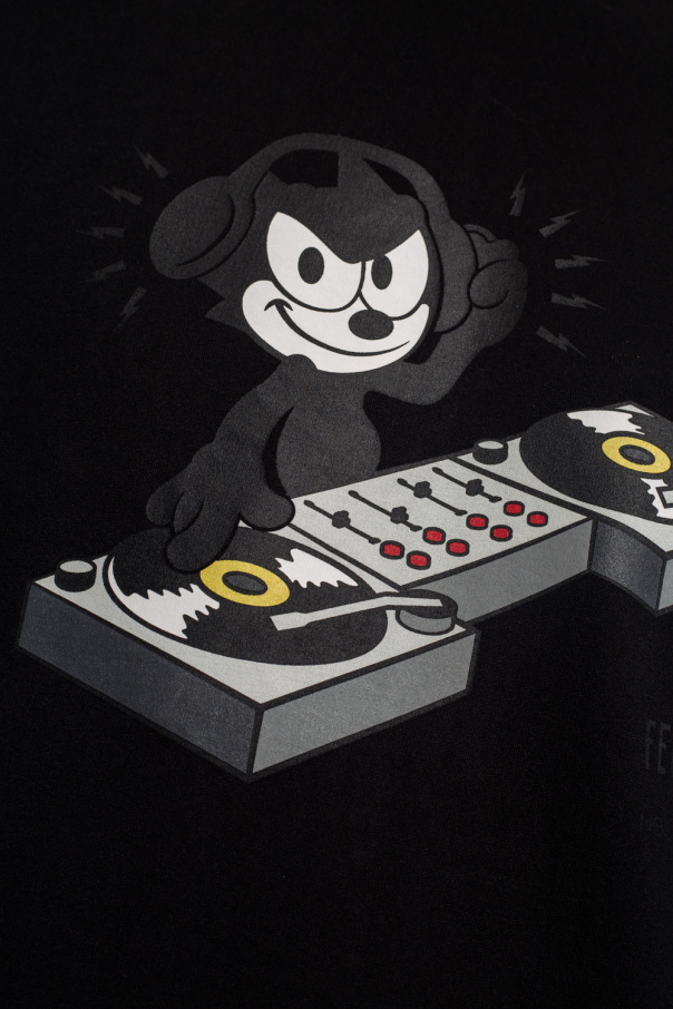 Black and white crewneck T-shirt from Neil Barrett x Felix The Cat. Made of cotton, this short sleeve features a multicolored print with the iconic Thunderbolt logo and cartoon characters.