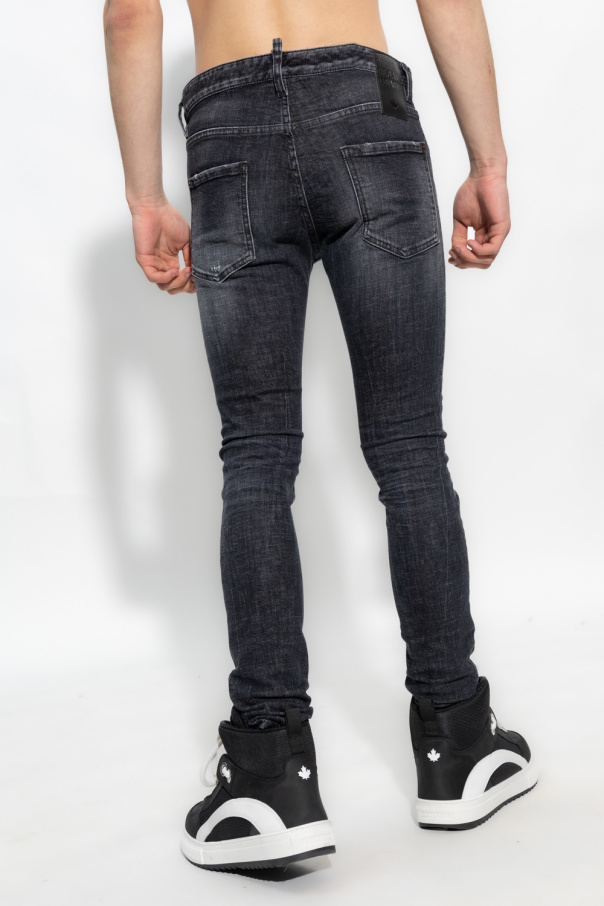 Black ‘Cool Guy’ jeans from Dsquared2, the ‘One Life One Planet’ collection. This slim fit pair features buttons, distressed and faded details, logo patches and five slip pockets.