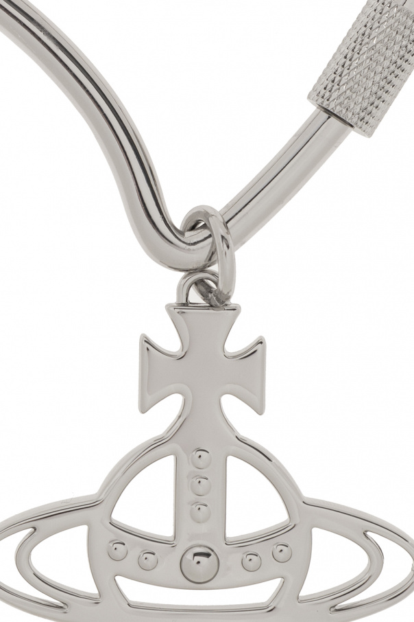 Silver-tone heart-shaped snap hook with a logo charm and keyring from Vivienne Westwood.