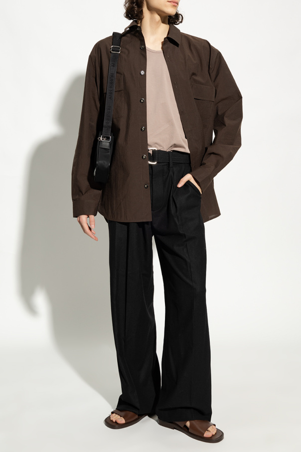 Brown ‘Kingsgate’ slides from Burberry. Made of leather, this pair features a silver-tone metal logo detail and brown leather sole.