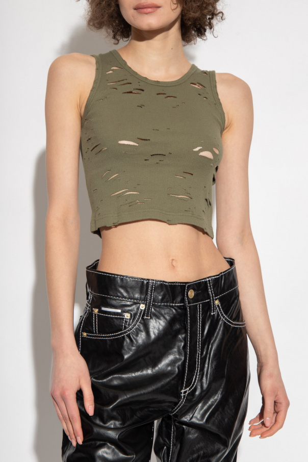 Green tank top from R13. Crafted from ribbed cotton with a vintage effect, this style features a form-fitting silhouette and a round neck.