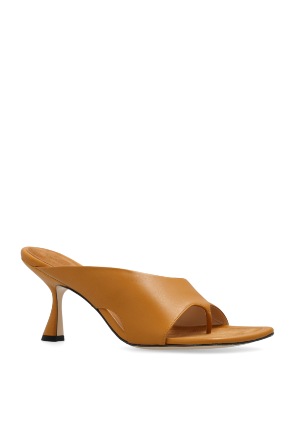 Brown \'Julio\' mules from Wandler. Made of lamb leather with a square toe, this model sits on a cream leather sole and features a silver-tone heel and cutout detailing on the side.