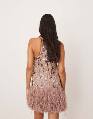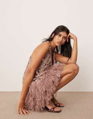 - Faux-feather hem