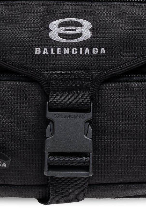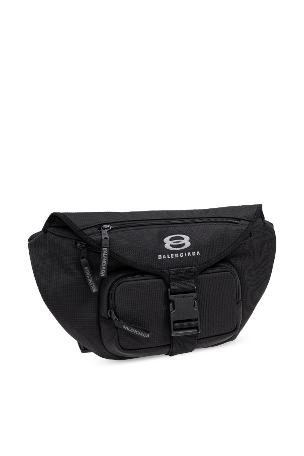 Introducing the Unity Large Shoulder Bag from Balenciaga\'s exclusive collection. This sophisticated black bag epitomizes elegance and functionality, making it an indispensable accessory for the modern man. Crafted from a durable, textured material, the Unity Large Shoulder Bag boasts an ergonomic, rounded shape for effortless shoulder wear. The bag features a spacious main compartment and additional smaller front pockets, offering ample storage and organization options. The high-quality zippers, adorned with Balenciaga logos on the pulls, further enhance the bag’s luxurious appeal. A prominent plastic buckle with the \"BALENCIAGA\" inscription on the front provides extra security for your belongings. The bag’s interior is thoughtfully designed with multiple pockets, ensuring your essentials are neatly arranged and easily accessible. The iconic Balenciaga logo in white, along with the brand’s symbol, is prominently displayed on the front, underscoring its exclusivity. Why Choose This Product? Ergonomic Design: Rounded shape for comfortable shoulder wear. High-Quality Material: Durable, textured surface for modern style and resilience. Ample Storage: Spacious main compartment with additional front pockets. Secure Closure: Features both a snap and zipper closure. Versatility: Can be worn as a shoulder bag or a belt bag. Exclusive Branding: Balenciaga logos on zippers and a prominent front buckle.