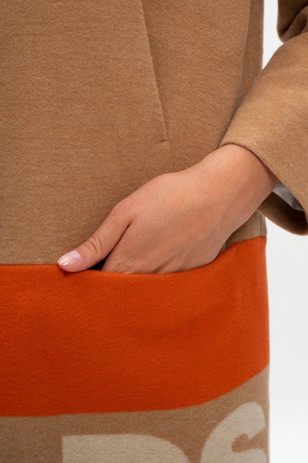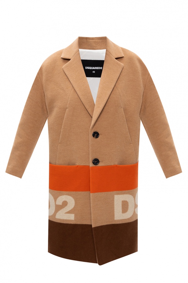 Brown, beige and orange coat from Dsquared2. Crafted from wool, this design is characterised by button fastenings, cream logo and four slip pockets.