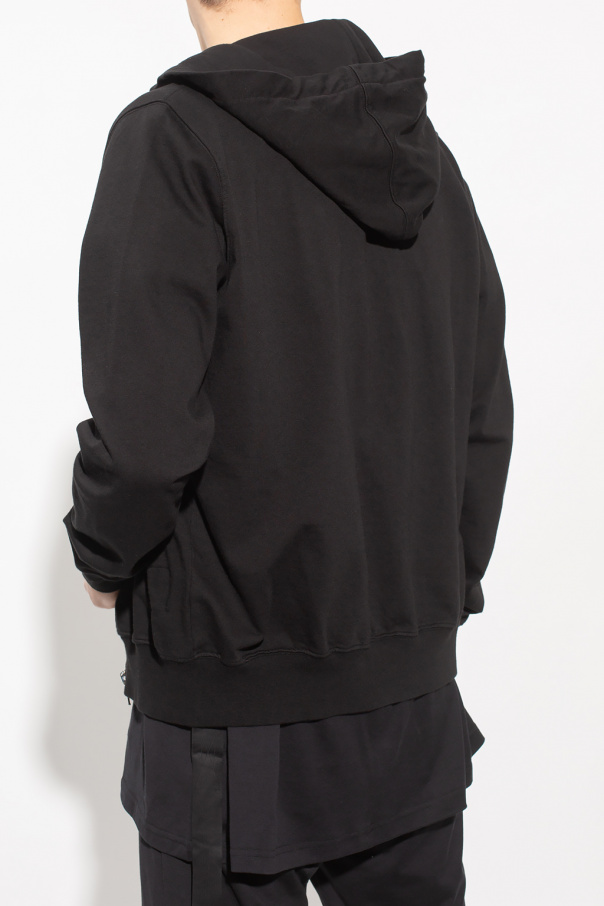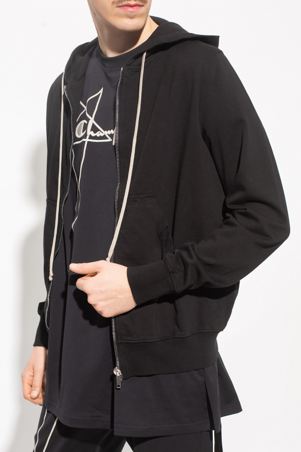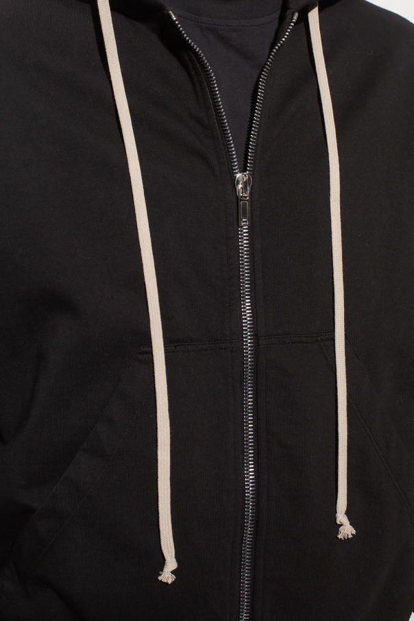 Black sweatshirt with a drawcord-adjustable hood from Rick Owens DRKSHDW. Crafted from cotton jersey, this style features a zip fastening, two slip pockets, ribbed trims and a branded grosgrain strap at the hem.