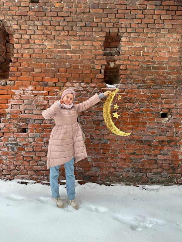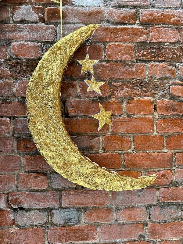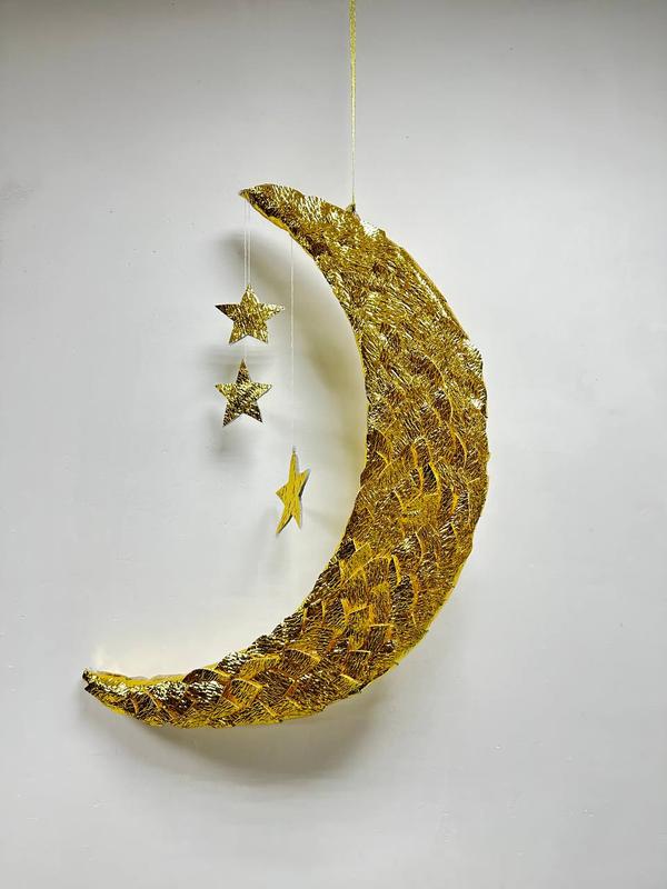 Декор місяць об'ємний двосторонній . Може використовуватися як декор на стіну, в магазини на вітрнину, на велику ялинку, веранду. Довжина місяця 70 сатиметрів.