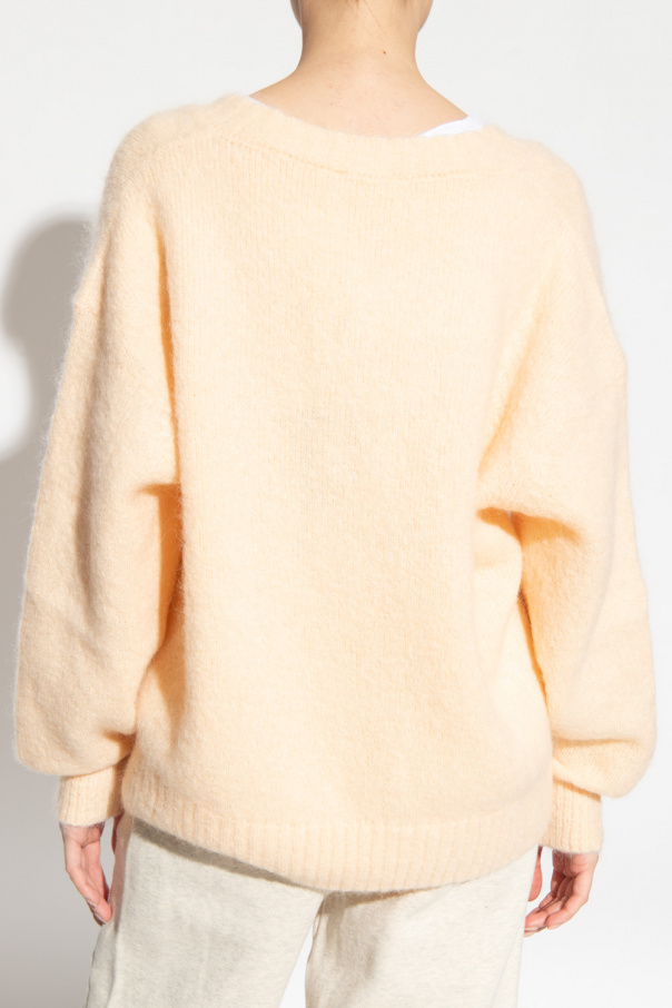 Light orange loose-fitting sweater from American Vintage. Crafted from a mohair blend, this garment has a ribbed V-neck, hem and cuffs.