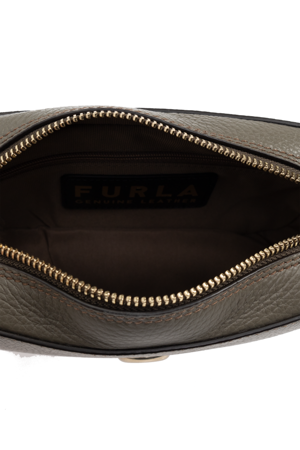 Introducing the \"Primula Mini\" shoulder bag by Furla, a masterpiece of craftsmanship and style. This exquisite piece is crafted from 100% high-quality leather, featuring a distinctive grain texture that exudes luxury. The bag\'s elegant, cool shade of green is accentuated by a stylized golden \"A\" logo, symbolizing the brand\'s commitment to elegance and recognition. The \"Primula Mini\" is as functional as it is beautiful, with an adjustable shoulder strap made from the same premium leather and adorned with golden metal elements, ensuring both comfort and style. The smooth back of the bag, embellished with the brand\'s name in golden letters, adds a touch of class and makes it instantly recognizable. The interior of the bag reveals a meticulous attention to detail typical of exclusive items, with a lining and brand label that speak of luxury. A golden metal zipper complements the bag\'s overall design, securing its contents with an elegant finish. Why purchase this product? Made from 100% high-quality leather, offering durability and a luxurious feel. Adjustable leather shoulder strap with golden metal elements for customizable comfort and refined style. Exclusive details, including the designer\'s metal logo and the brand name in gold letters, enhancing its elegance and brand recognition. Functional interior features, including a compartment, a zippered pocket, and a slip pocket, ensuring practical storage options. Distinguished by its unique cool green shade, making it a standout accessory for any ensemble.
