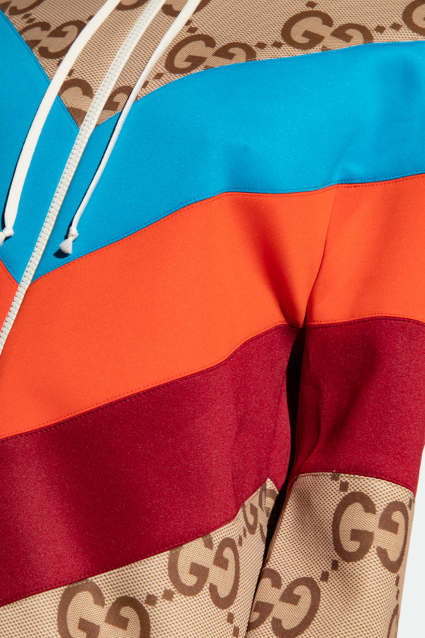 Multicolored hoodie from Gucci. Fastened with a zip, this garment feature a drawstring hood, monogram pattern, two slip pockets, mesh lining and ribbed trims at the hem and cuffs.