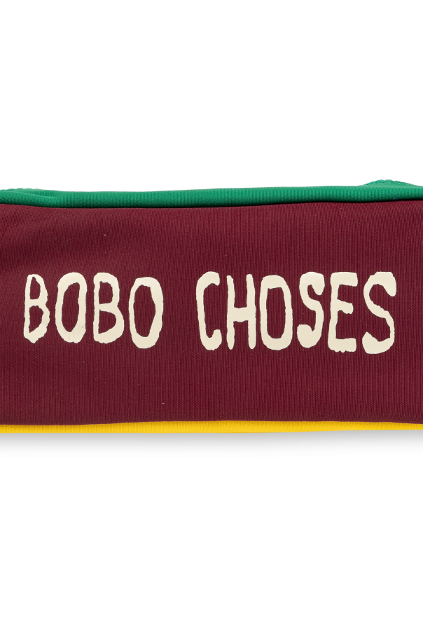 Introducing the Bobo Choses Pencil Case, a sophisticated accessory from the esteemed Spanish brand, Bobo Choses. Tailored for the discerning young scholar, this pencil case encapsulates the essence of playful elegance and superior craftsmanship. Meticulously crafted from a blend of cotton, viscose, and elastane, this rectangular pencil case features a vibrant color palette. The front showcases a rich burgundy hue with the iconic white \"BOBO CHOSES\" inscription, while the top is adorned in green, and the bottom in a lively yellow. The sides, also green, are accented with navy trims, creating a harmonious yet striking visual appeal. Designed for practicality and style, the pencil case is equipped with a green zipper, enhanced by a decorative green and white cord. The interior, lined in navy fabric, offers ample space for storing pens, pencils, and other school essentials. A discreet internal label bearing the brand\'s name adds a subtle touch of exclusivity. Why Choose This Product? Exquisite Design: A blend of vibrant colors and elegant branding. Premium Materials: Crafted from high-quality cotton, viscose, and elastane. Practical and Stylish: Ample storage space with a charming green zipper. Exclusive Brand: From the renowned Bobo Choses, known for their imaginative and eco-friendly products.
