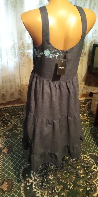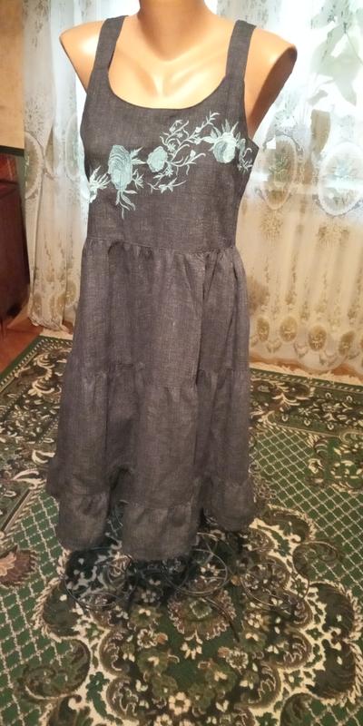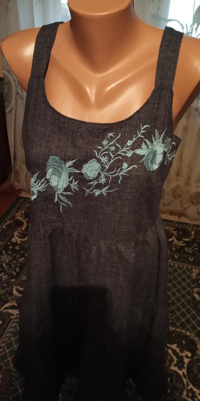 Очень стильный сарафан со свободной слегка завышенной талией из смеси льна и вискозы. Декорирован сарафан вышивкой- голубые розы.