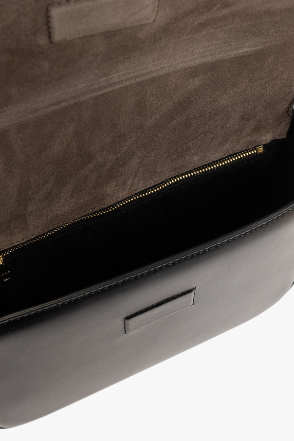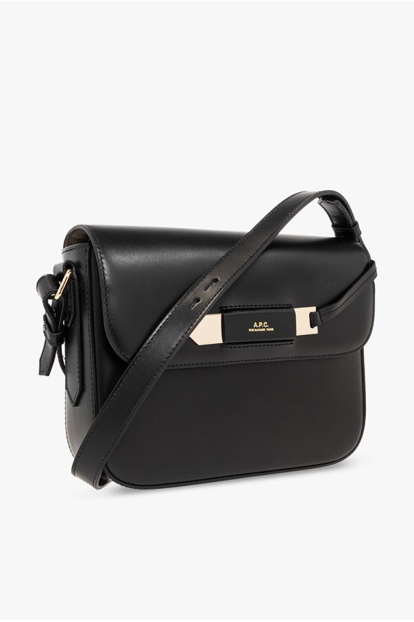 Black ‘Charlotte’ shoulder bag from A.P.C. Crafted from leather, this design secures with a magnetic fastener and features a decorative application accompanied by a logo print on the front, an adjustable strap, gold-tone metal hardware and one internal compartment with a zip pocket.