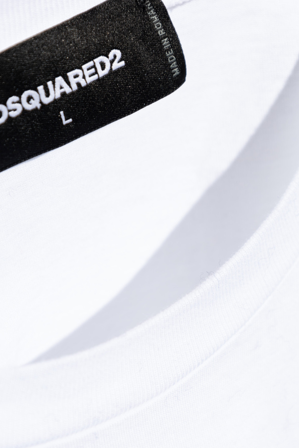 Introducing the DSQUARED2 Logo T-Shirt, an epitome of understated elegance and contemporary design. This pristine white T-shirt, curated from the exclusive collection of the illustrious DSQUARED2 brand, embodies the perfect blend of luxury and casual sophistication. Crafted from the finest quality cotton, this T-shirt promises unparalleled comfort and a soft touch against your skin. The classic design features a crew neck and short sleeves, ensuring a timeless appeal and a versatile addition to any wardrobe. The distinguishing feature of this T-shirt is the subtle yet iconic logo on the left chest. The rectangular patch, adorned with red and white hues and the renowned \"DSQUARED2\" inscription, evokes a sense of refined patriotism, reminiscent of a flag motif. The back of the T-shirt remains elegantly plain, focusing attention on the impeccable front design. Additionally, the interior neckline is graced with a black label showcasing the \"DSQUARED2\" branding and size indication, adding a touch of sophistication even to the unseen details. Why Choose This Product? Exclusive design by DSQUARED2 High-quality cotton material for exceptional comfort Classic and versatile crew neck and short sleeves Iconic logo patch for a subtle statement Perfect balance of luxury and casual style