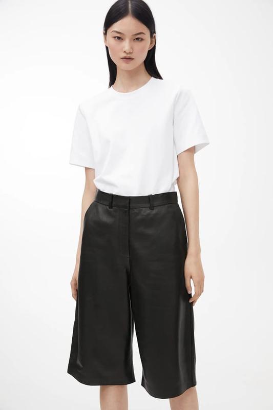 Выполнены из мягкой кожи премиум-класса, которая прошла процесс бесхромного дубления, эти брюки-кюлоты отличаются высокой талией и прямыми штанинами, которые опускаются чуть ниже колен. Детализированный косыми боковыми карманами, шлевками для ремня и одним прорезным карманом сзади.