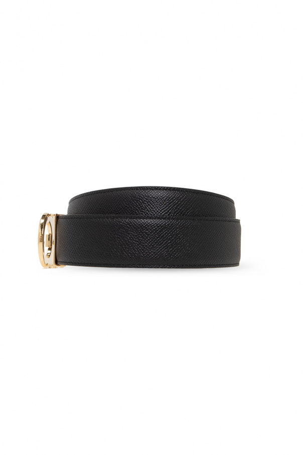 Reversible belt in black and brown from Salvatore Ferragamo. Made of grained leather, this item features the brand\'s signature Gancini buckle in gold-tone.