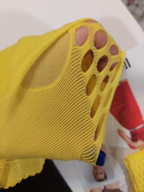 Collette очень модные стильные колготки.Носок мелкая сетка все продумано до мелочей.В двух цветах ярко жёлтый и красном На фото цвет соответствует в размере S .Этот размер универсален подойдёт и на XS M