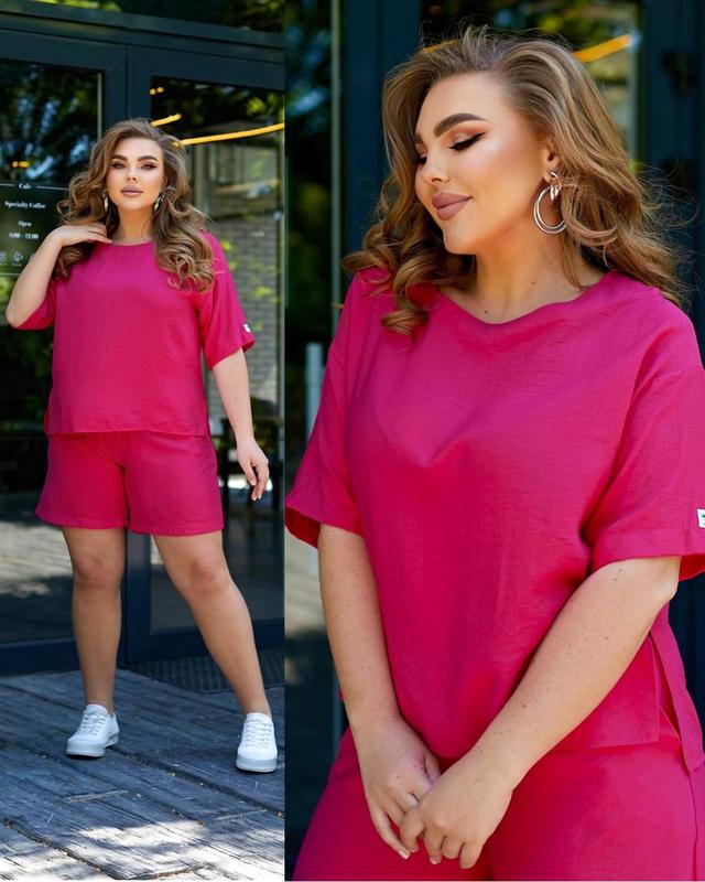 Шорты на высокой посадке, в боковых швах карманы, пришивное украшение! Невероятно легкий! Это именно тот костюм, который нужен для жаркого лета и максимально комфортного образа!Состояние: НовоеЦвет:- Розовый