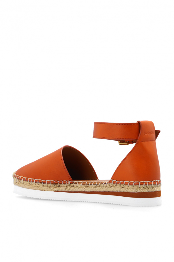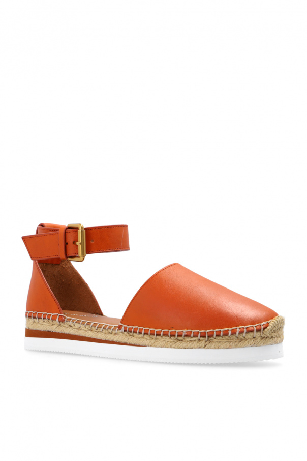 Light brown espadrilles from See By Chloé. Made of calf leather, this model features cut-out detailing, a leather ankle strap with a buckle, gold-tone metal hardware and a white rubber sole.
