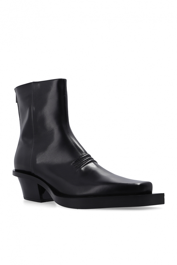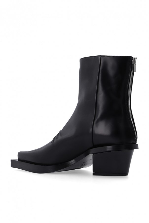 Black ‘Leone’ ankle boots from 1017 ALYX 9SM. Crafted from leather, this model features a back zip closure, decorative topstitched detailing on the front, a varnished heel and a black sole in leather and rubber.