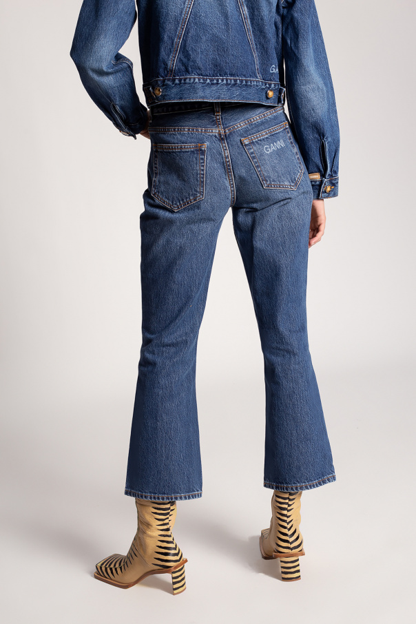 Blue jeans from Ganni. Fastened with a zip and button, this pair is complete with five slip pockets and a logo printed at the back.