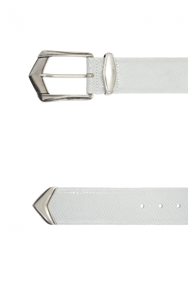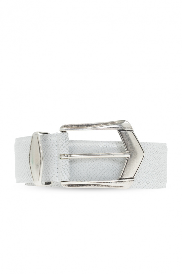 White belt from Iro. Made of textured leather, this item features an antiqued silver-tone metal buckle.