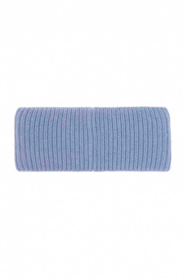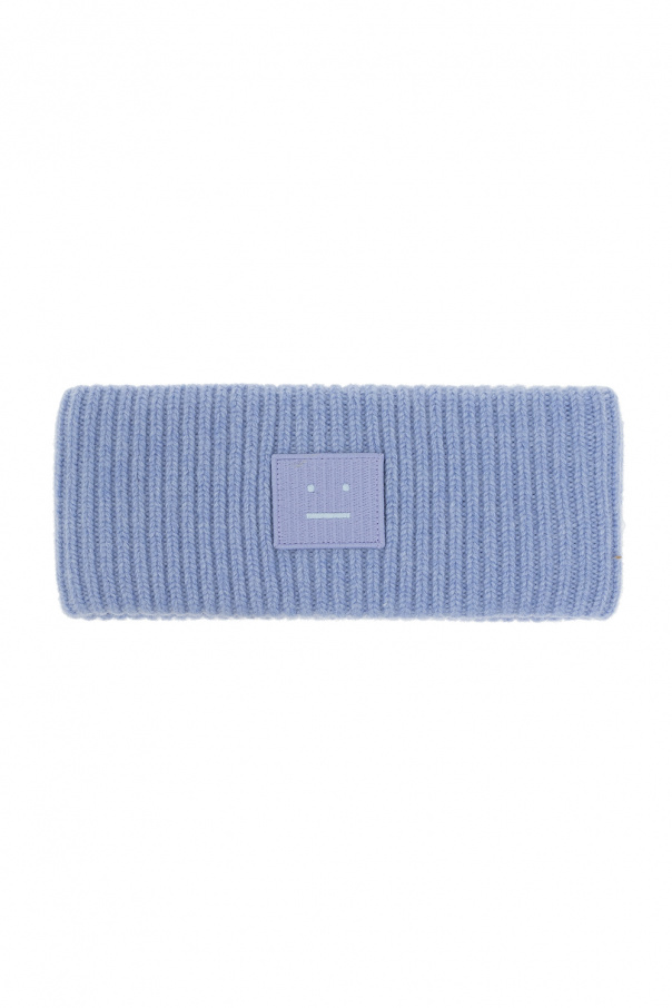 Blue headband from Acne Studios. Crafted from a ribbed wool knit, this item features a logo patch for brand recognition.