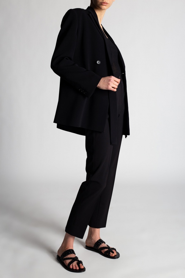 Black crewneck tank top from Saint Laurent. Crafted from see-through linen fabric, this sleeveless garment is complete with raw-edge trims.
