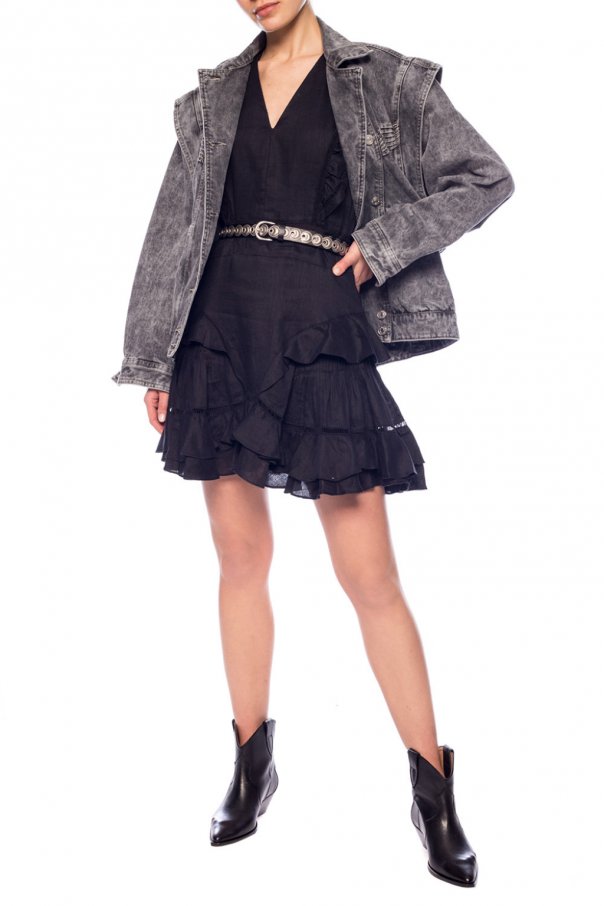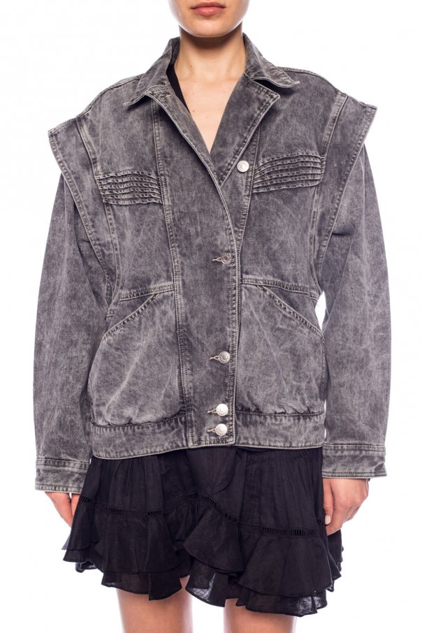 Grey denim jacket with detachable sleeves from Isabel Marant Étoile. Also features button fastening and 2 slip frontal pockets.