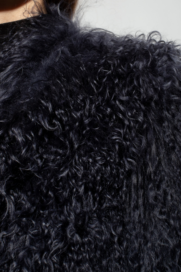 Navy ‘Brooke’ shearling jacket with long sleeves from AllSaints. Made of sheepskin.