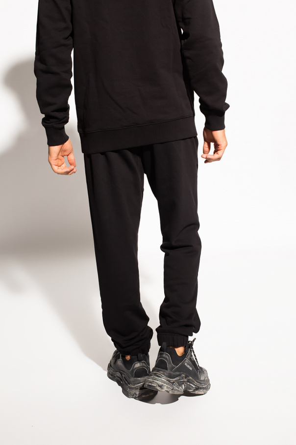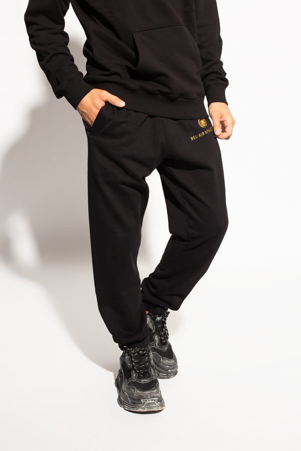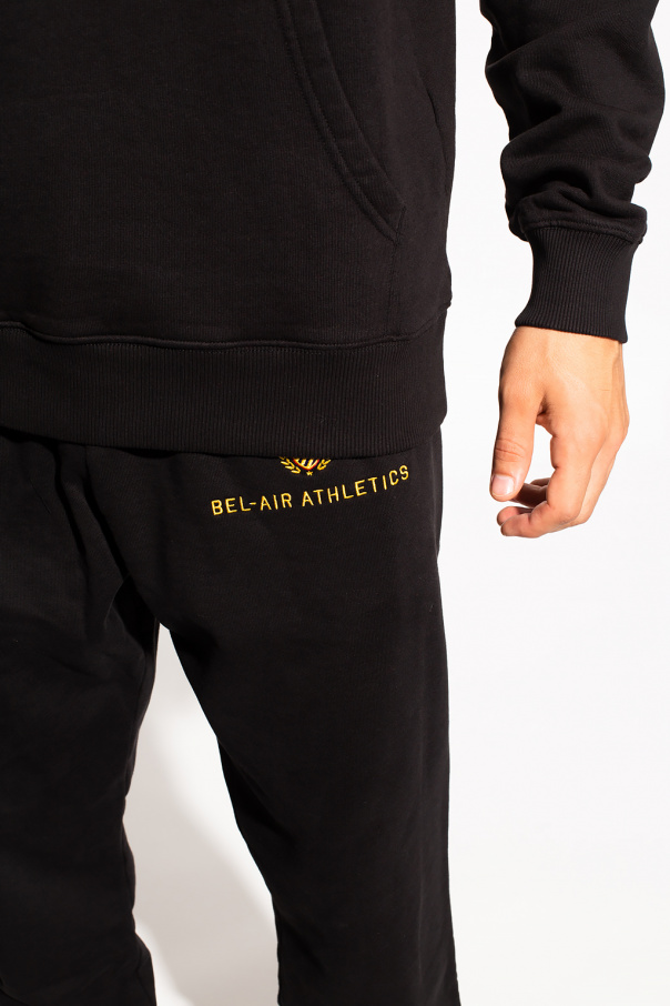 Black sweatpants from Bel-Air Athletics. Crafted from cotton, this pair features a drawstring waist, two frontal zip pockets, elasticated cuffs and an embroidered logo.