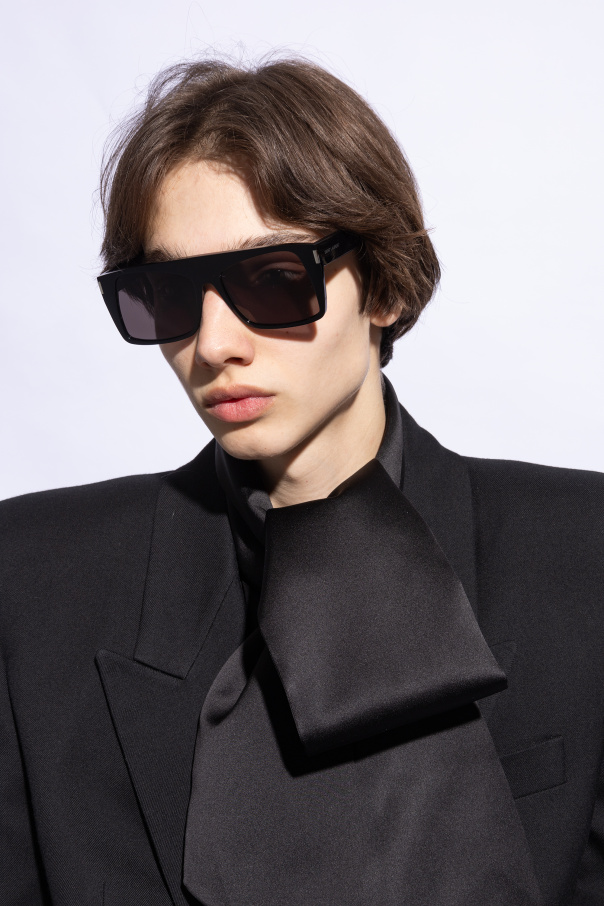 Introducing the \'SL M136\' sunglasses by Saint Laurent, a masterpiece of design that combines elegance with functionality. Crafted with precision, these sunglasses feature large, rectangular lenses tinted in a sophisticated shade of dark brown, providing extensive visual clarity and superior protection against the sun\'s rays. The frames, in a dominant black hue, exude elegance and versatility, making these sunglasses a universally appealing accessory. The robust and solid construction of the \'SL M136\' model, with its thick sides and wide bridge, speaks volumes about its durability and high-quality craftsmanship. The presence of the designer\'s logo on one of the temples not only serves as a hallmark of authenticity but also signifies the exclusivity of this collection. The sunglasses come with an accompanying case, suggesting a set that offers additional protection and ease of storage. Observations from real-life usage indicate that these sunglasses harmonize with the face without overpowering it, a testament to their well-conceived proportions. Moreover, a closer inspection reveals the prominently embossed \'SAINT LAURENT\' logo on the side, further asserting the brand\'s identity and the product\'s prestige. Made from high-quality acetate and nylon, the \'SL M136\' sunglasses are not just a fashion statement but a shield against harmful UVA/UVB rays, thanks to their grey lenses offering 100% protection. This blend of style, functionality, and protection makes them an exquisite choice for those seeking exclusive fashion accessories. Why Choose the \'SL M136\' Sunglasses? Elegant and versatile design, perfect for any style. Durable construction with high-quality materials. 100% protection against UVA/UVB radiation. Authenticity guaranteed with the distinctive Saint Laurent logo. Comes with a protective case for easy storage.