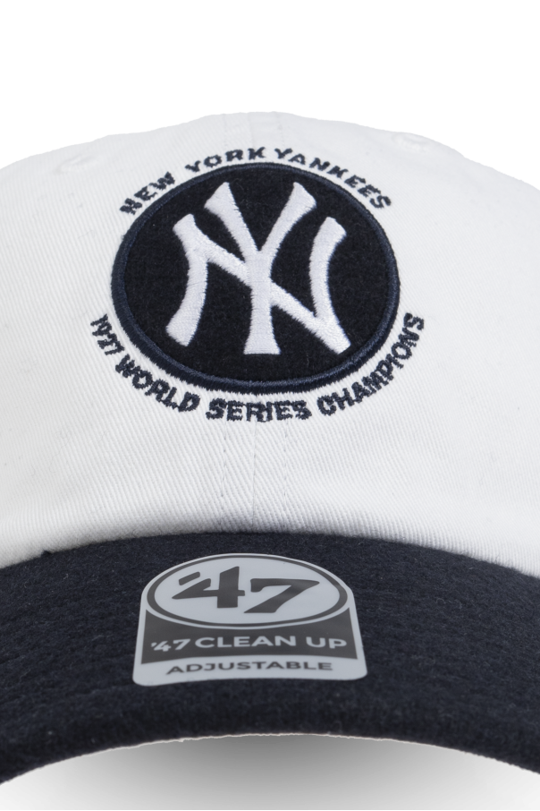 Introducing the 47 & The New York Yankees Cap, an exquisite fusion of classic style and modern flair. This cap, designed by the illustrious Sporty & Rich, showcases a timeless elegance with its dominant white hue and striking black visor, creating a sophisticated contrast. Adorned with the prominent embroidered New York Yankees logo, it proudly displays the words \"NEW YORK YANKEES\" and \"27X WORLD SERIES CHAMPIONS,\" a tribute to sporting excellence. The brand\'s signature 47 is discernible on the visor and side, underscoring its authenticity. Crafted from durable cotton, this cap offers a classic sporty silhouette with an adjustable back closure, ensuring a perfect fit for all. Its universal appeal makes it an ideal accessory for any gender, effortlessly elevating casual ensembles. Why choose this product? Iconic design with a bold logo and champion\'s inscription Crafted from premium cotton for lasting wear Adjustable fit for personalized comfort
