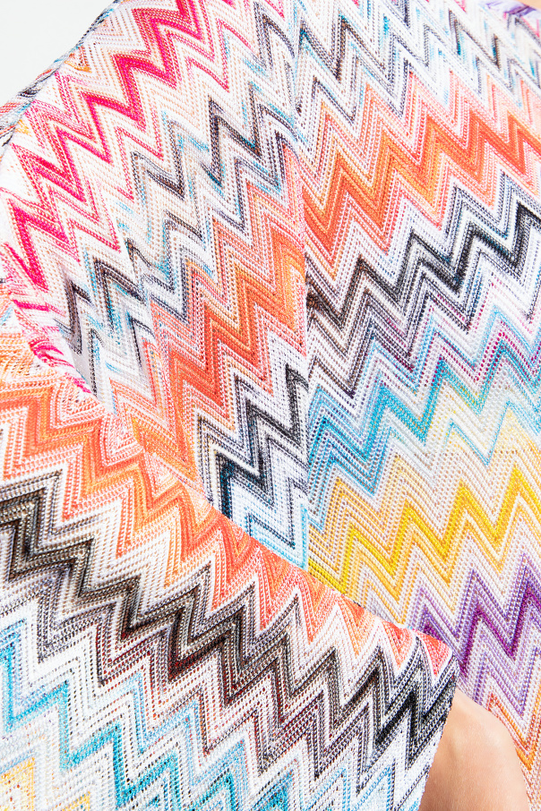 Multicolored asymmetric beach dress from Missoni. Decorated with the brand\'s signature a zig-zag pattern, this round neck design fastens with decorative drawstrings on the sides.