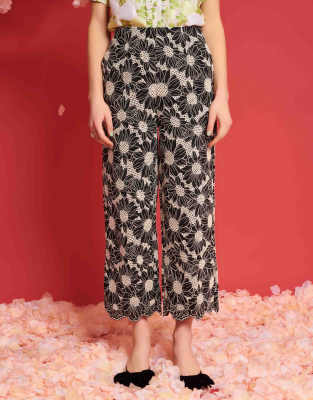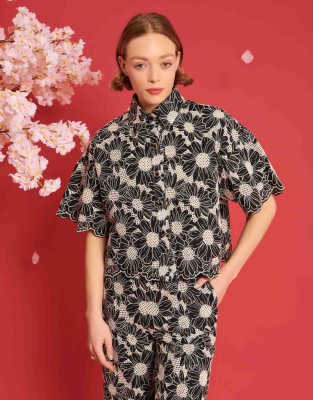 Dream Sister Jane flower embroidered shirt & trousers in black