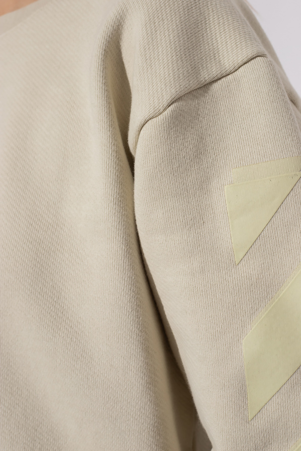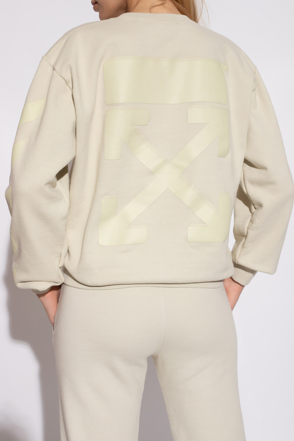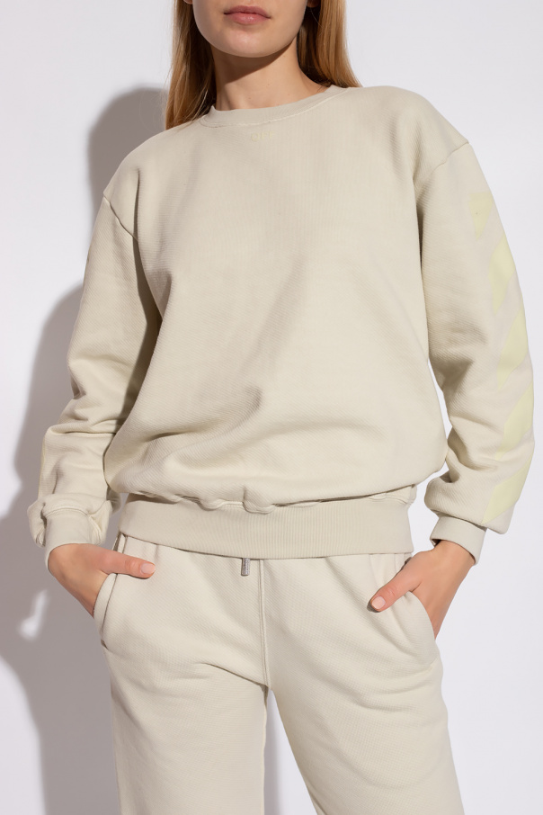 Light green crewneck sweatshirt from Off-White. Made of cotton, this garment is enriched by a logo pattern and ribbed trims at the neck, hem and cuffs.