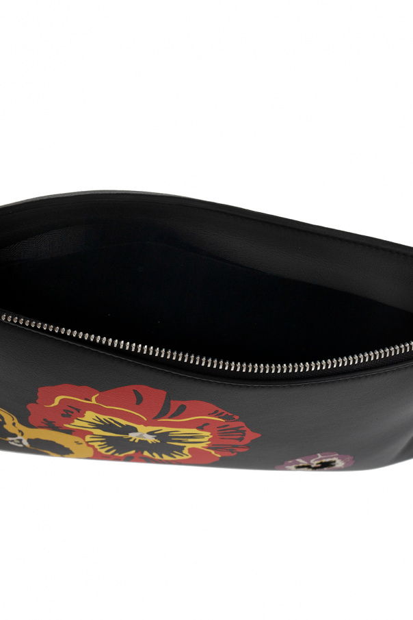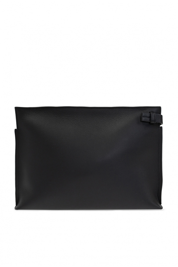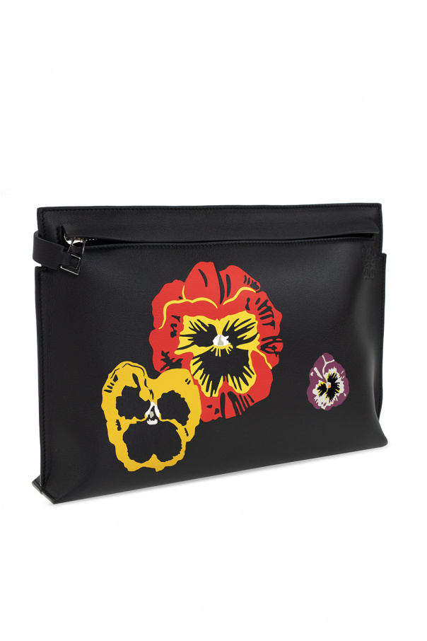 Black ‘T’ clutch from Loewe. Crafted from leather, this model fastens with a zip and is complete with a multicolored floral pattern, silver-tone metal hardware and one internal compartment with one zip pocket.