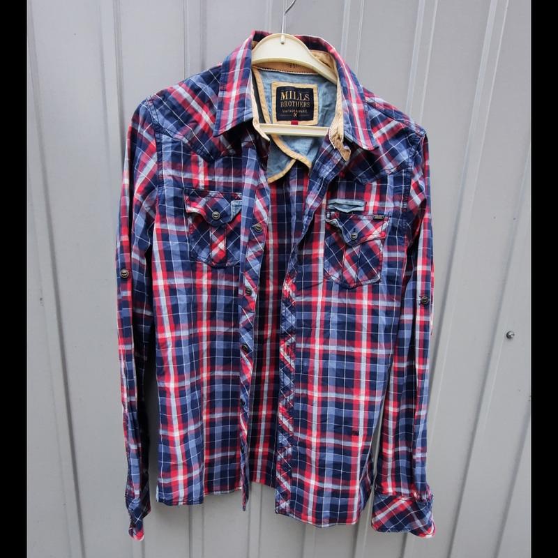 Состояние почти новая,видно на фото.Замеры: полуобхват груди-52см,плечи-42см,длина по спине-76см,длина рукавов-68см,длина внутреннего шва рукавов-53см,Mills Brothers,Vintage Apparel,size-M,100%cotton,made India.
