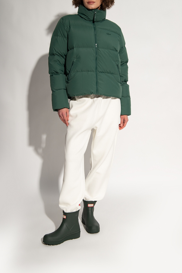 Dark green ‘Play’ rain boots from Hunter. Handcrafted from natural vulcanized rubber with a matte finish, this model features a logo appliqué on the front, a white-red-navy blue pull tab accompanied at the back and a rubber outsole with Hunter Original tread pattern.