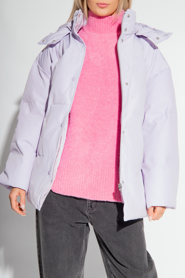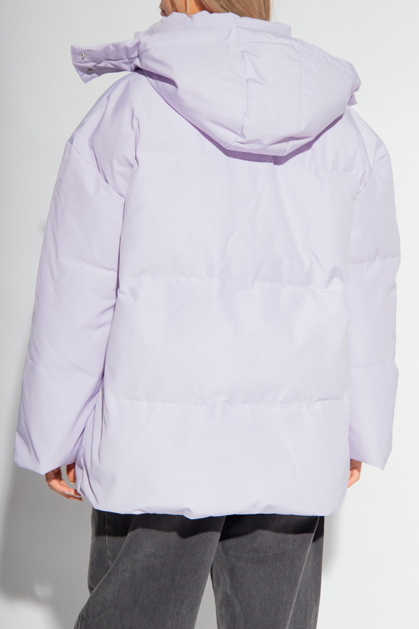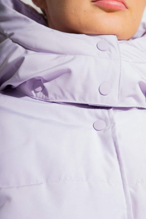 Light purple ‘Hana’ quilted hooded jacket from Samsoe Samsoe. Made of recycled fabric, this breathable, wind- and waterproof garment features Primaloft® Thermoplume® insulation, zip and snap button placket, detachable snap-fastened hood, two slip pockets and long sleeves.